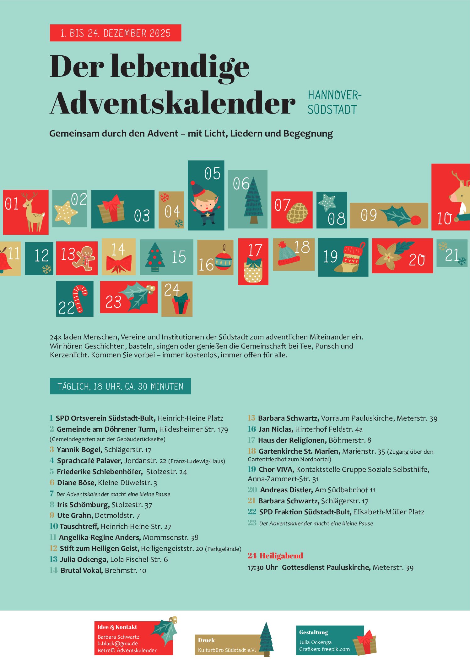 Am 19.12.2025 wird unser Chor VIVA im Rahmen des „lebendigen Adventskalenders“ der Südstadt auftreten!